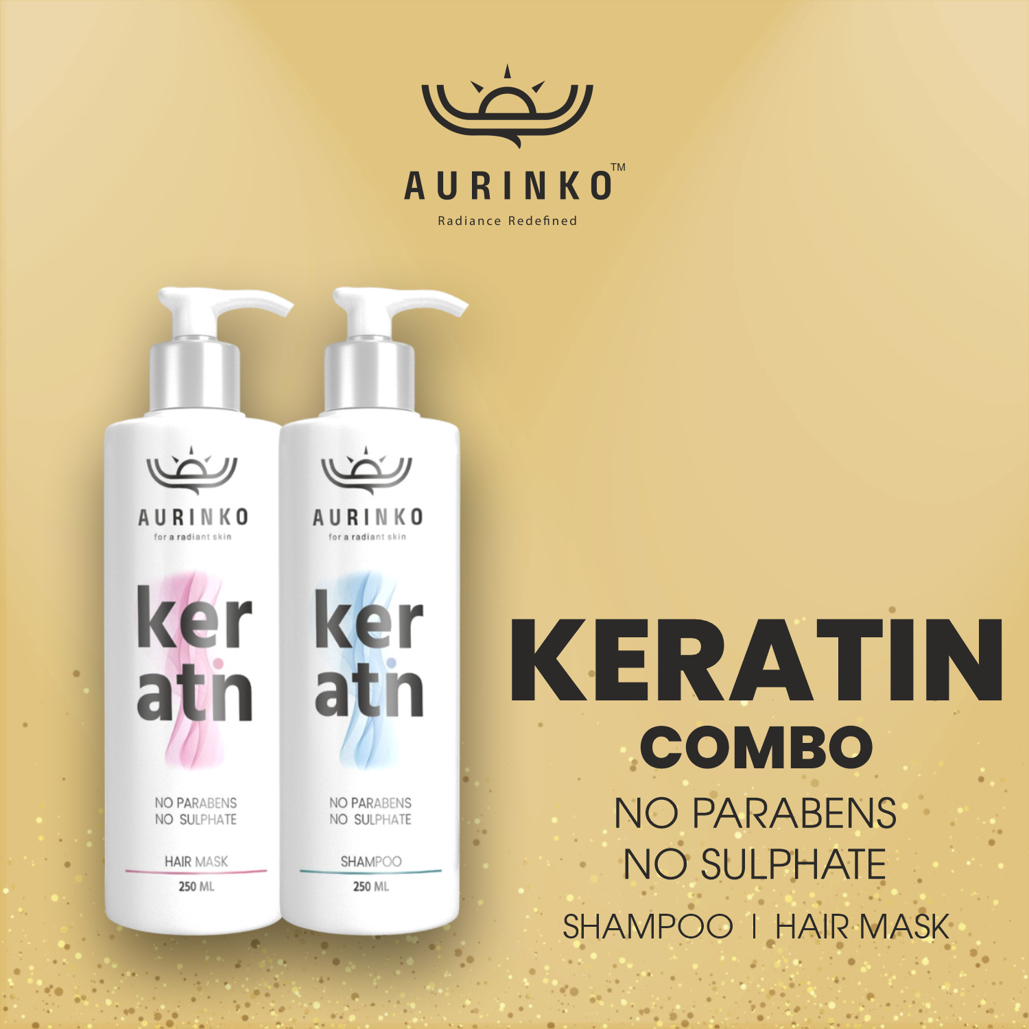 Experience salon-quality aftercare and keep your hair looking gorgeous with Aurinko Keratin After Care Shampoo & Hair Mask Combo.